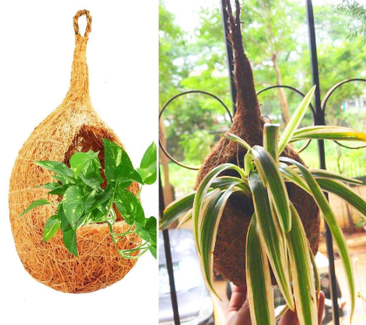 ZENRISE Coir and Coconut Shell Hanging Planters for Orchids air Succulent Plants Indoor, Bird Nest Shape, 20 x 13 cm, Pack of 4