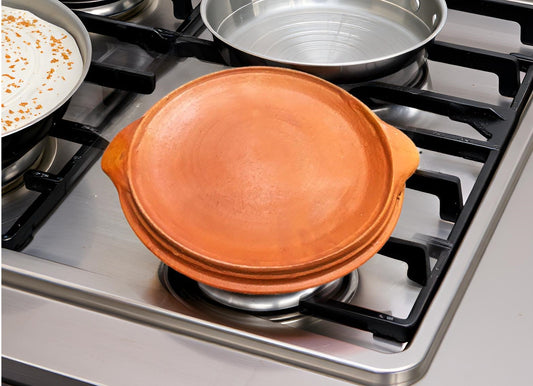 ஜென்ரைஸ் களிமண் தோசை சப்பாத்தி ரொட்டி தவா கைப்பிடியுடன் கூடிய பான்/பரிமாற்றுத் தட்டு, டெரகோட்டா, 24 செ.மீ விட்டம்