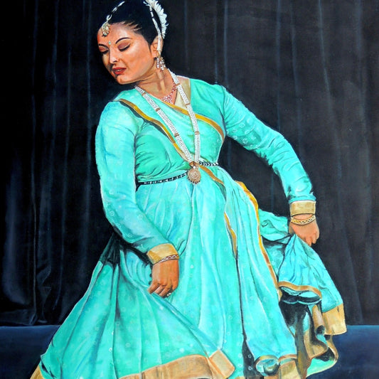 கதக் நடனக் கலைஞரின் கை ஓவியம் அசல் கேன்வாஸில், பிரேம் செய்யப்படாதது, 56x90 செ.மீ.