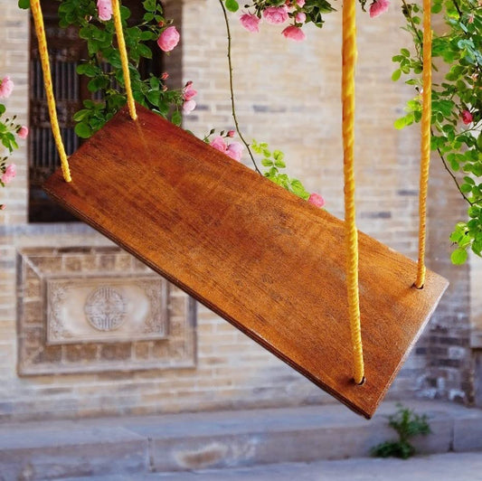பெரியவர்கள் மற்றும் 10 வயதுக்கு மேற்பட்ட குழந்தைகளுக்கான கயிறுகளுடன் கூடிய ZENRISE® இயற்கை மர ஊஞ்சல் வீடு, வாழ்க்கை அறை, 2 அடி ஒற்றை இருக்கை